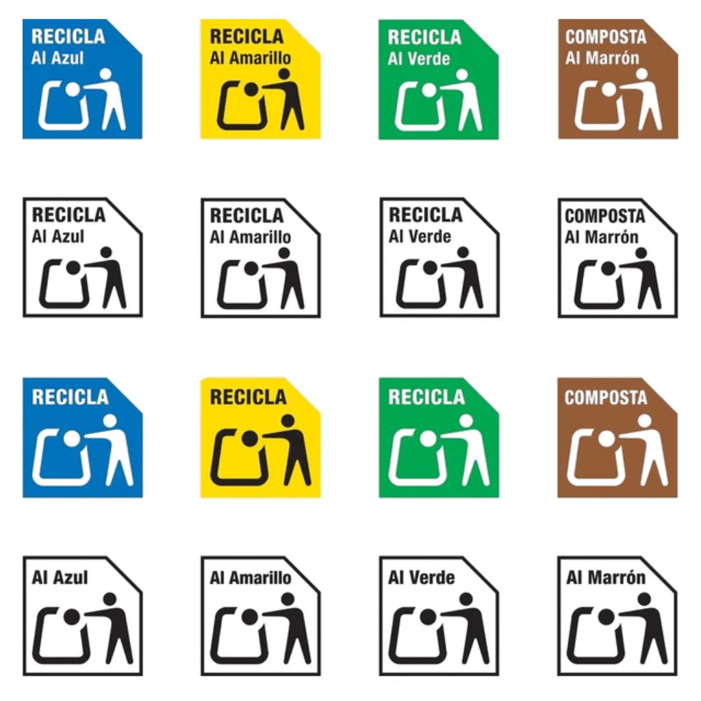 • Se deben usar símbolos gráficos oficiales (por ejemplo, los del Proyecto Circular Lab de Ecoembes en España o los de Citeo en Francia).